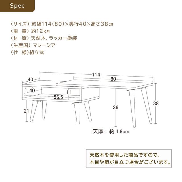 【商品サイズ】約 幅114(80)×奥行40×高さ38cm