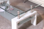 透明感が美しいガラス天板と直線的なフォルムがスタイリッシュなモダンテーブルです。