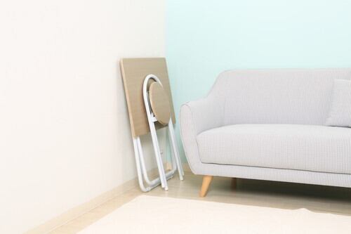 テーブルもチェアも折りたたみ可能で、使用しないときはお部屋の隙間スペースに収納できます。