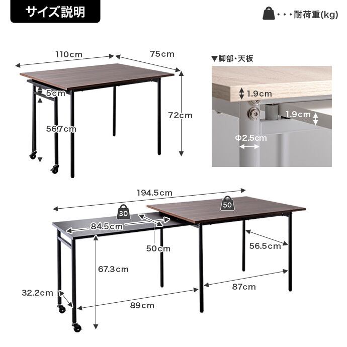 【耐荷重】天板:約50kg 、スライド天板:約30kg