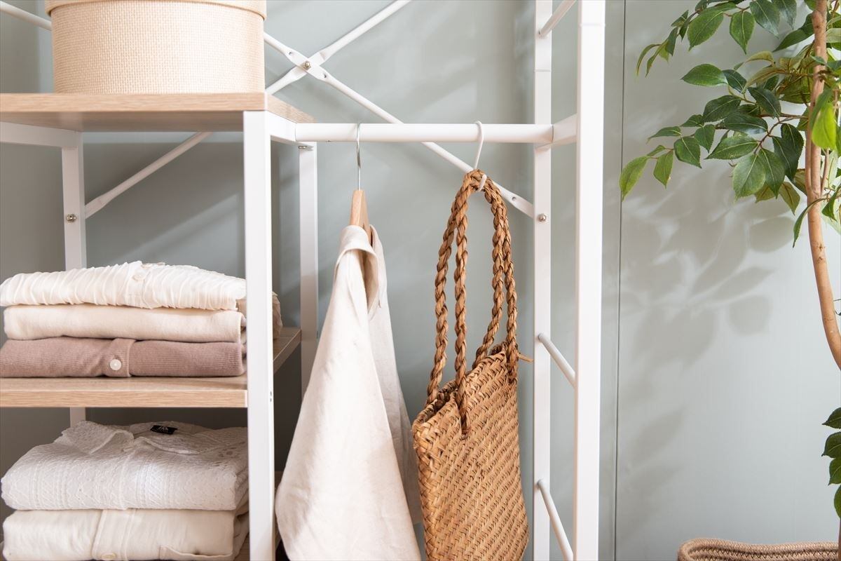 1台にまとめて収納できる多機能な『Tito(ティート)』シリーズの棚付きハンガーラック