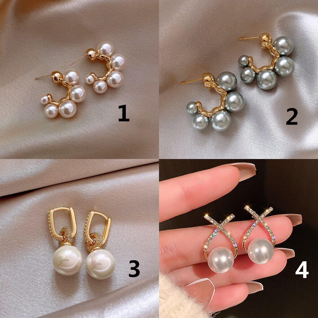【4】レディースピアス 一粒 イミテーションパール 清楚 ガーリー チェーン ジルコニア 蝶々 ハート フラワー